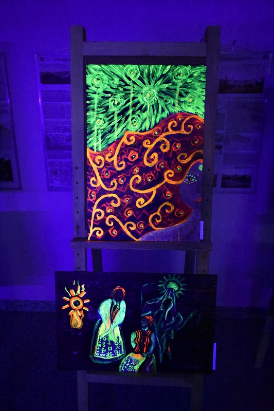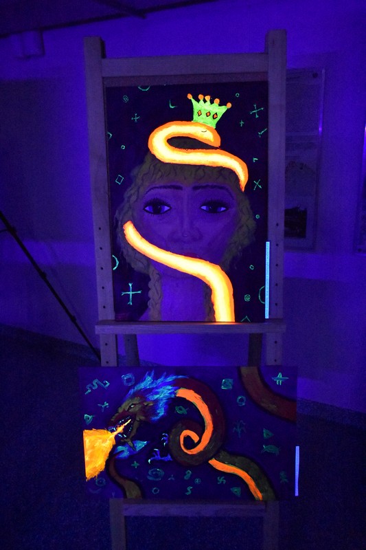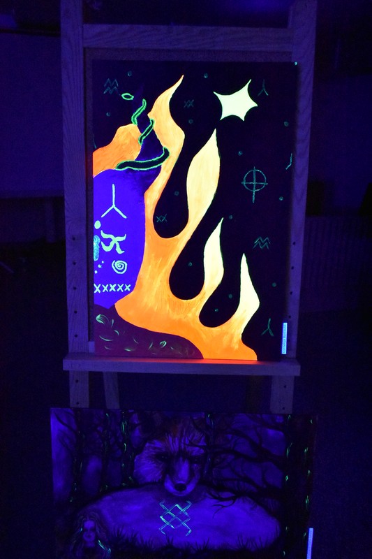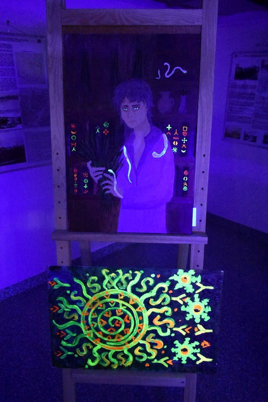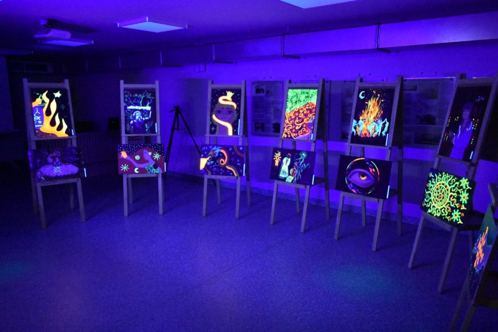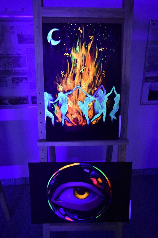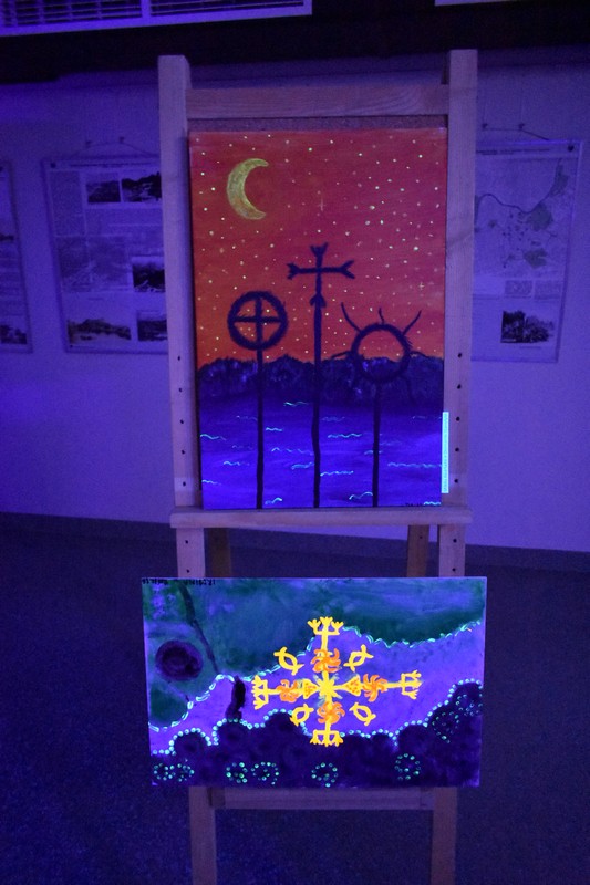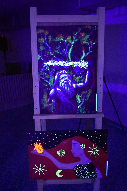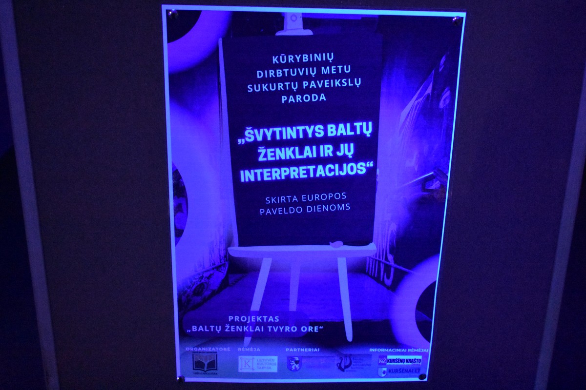 Praėjusio penktadienio vakarą, užtemdytoje renginių salėje veikė kūrybinių dirbtuvių metu sukurtų paveikslų paroda „Švytintys baltų ženklai ir jų interpretacijos“. Tamsoje dalyviai eksponuojamuose paveiksluose galėjo įžvelgti mitologines būtybes, iškylančius baltų dievus ir baltų simbolius. Kūrybinėse dirbtuvėse dalyvavo ir paveikslus nutapė Kuršėnų Lauryno Ivinskio gimnazijos 10-12 klasių mokiniai su dailės mokytoja Žyginta Ivanavičiene. Kūrybinės dirbtuvės organizuotos vykdant projektą „Baltų ženklai tvyro ore“. Projektą dalinai finansuoja Lietuvos kultūros taryba, partneris Šiaulių rajono savivaldybė.