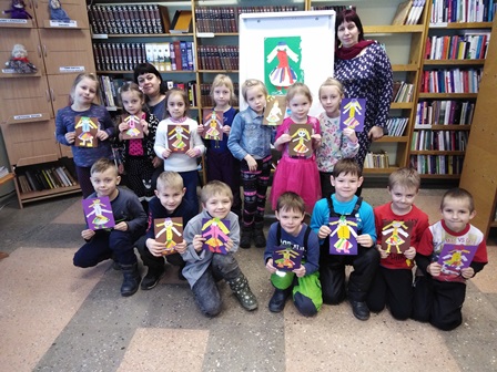 Vaikučių laukė nemenkas iššūkis – iš spalvoto popieriaus plėšyti skirtingo dydžio gabalėlius ir suklijuoti iš jų šventiškai pasipuošusią lietuvaitę. Rezultatas pranoko visus lūkesčius – nuotaika buvo tokia puiki, kad norėjosi dainuoti. Merginų ansamblis padainavo dainelę, išmoktą Lietuvos gimtadieniui paminėti. Kol dalyviai vaišinosi atsineštais užkandžiais, vyresnioji bibliotekininkė Jurgita Jasiškytė pasekė lietuvių liaudies pasaką apie tai, kaip žmonės norėjo atsikratyti savo pilvo ir kas iš to išėjo.