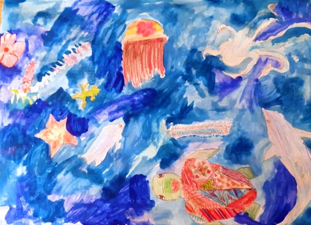 Šiaulių rajono Bubių mokyklos penktos klasės mokiniai( dailės mokytoja metodininkė Raimonda Valančienė), šių metų kovo – balandžio mėnesiais sukūrė darbelius „Vandenynas pasakoja“. Visi be išimties piešinių autoriai – šaunūs, kūrybingi ir išsaugoję jautrų, žmogišką ryšį su supančiu pasauliu. Moksleivių darbai atskleidžia, kad dažnai nuogąstaujama be reikalo – esą auga kompiuterizuota, psichologinių, bendravimo sunkumų patirianti karta, atitrūkusi nuo realybės. Akivaizdu, kad vaikų vizijos gimsta pasitelkus ne tik technologines žinias, bet ir stebint pasaulį – gamtą.