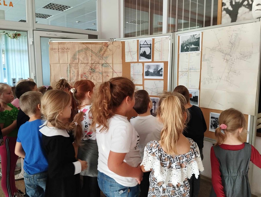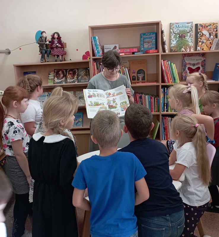 Rugsėjo 29 d. Gruzdžių Augustino Griciaus bibliotekoje lankėsi Gruzdžių gimnazijos pirmokai su mokytoja Aurelija Mykolaitiene. Vyresnioji bibliotekininkė Jurgita Jasiškytė vaikams papasakojo bibliotekos istoriją, pristatė bibliotekoje vykstančią parodą ,,Gruzdžių miestelis anksčiau ir dabar“. Vaikai su didžiuliu susidomėjimu tyrinėjo apie 1970 metus sudarytą  didelį Gruzdžių miestelio žemėlapį, ant kurio parašyta, kad tuo metu miestelyje gyveno 2920 gyventojų, o dabar tik 1198. Vaikų literatūros  skyriuje pirmokai pamatė gausybę knygučių, kurias jie gali išsirinkti ir neštis namo perskaityti. Vyresnioji bibliotekininkė Liongina Šufinskienė parodė, kaip veikia Lietuvos integrali bibliotekų informacijos sistema (LIBIS), o tuos, kas dar neturi skaitytojo bilieto, paragino, pasitarus su tėveliais, jį įsigyti. Vaikai sužinojo, kad bibliotekoje jie gali ne tik išsirinkti knygas, bet ir naudotis kompiuteriais, žaisti stalo futbolą, biliardą ir kitokius žaidimus. Vaikams labai patiko išbandyti įvairias procedūras Relaksacijos kambaryje, lėlių teatro „Stebuklingas lagaminas“ kambarėlyje sužinojo, kaip valdyti teatrines lėles. Išklausę pasakos „Raudonkepuraitė“, pabandė ją suvaidinti su teatrinėmis lėlėmis. Iš bibliotekos mažieji svečiai išėjo nešini knygelėmis, pažadėję dažniau apsilankyti ir su tėveliais.