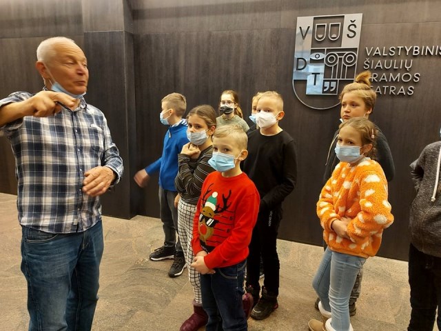 Ekskursijos metu moksleiviai ne tik klausėsi, bet ir vaikščiojo po teatro sceną bei susipažino su elgesio joje taisyklėmis, išbandė savo aktorinius gabumus, deklamuodami Ramutės Skučaitės eilėraštį „Susapnuotas laikas“. Šmirinėjant teatro užkulisiais, moksleiviai turėjo galimybę pamatyti dekoracijų sandėlį ir rekvizitų kambarį, kuriuose laikomi daiktai, be kurių neįsivaizduojamas nei vienas spektaklis. Grimo kambariuose ketvirtokai išgirdo apie teatrinio grimo atlikimo subtilybes ir jo svarbą. Tuo įdomybės nesibaigė. Kostiumų sandėlyje apžiūrėti teatriniai kostiumai, žvilgterėta į teatre veikiančius gamybinius cechus, repeticijų erdves. Visa tai, kartu su kūrybinio darbo „virtuve“, telpa po teatro stogu.