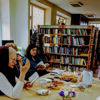 Aktyvi bibliotekos skaitytoja Nijolė Špečkauskienė trumpai apžvelgė poeto, knygnešio J. Krikščiūno-Jovaro gyvenimo, veiklos ir kūrybos kelią, paskaitė jo eilėraščių. Popietės metu ištraukas iš Filomenos Taunytės knygos „Šventųjų gyvenimas Marijos žemėje“ ir poeto Jovaro eiles iš 1961 m. išleistos poezijos knygelės skaitė Ona Vietienė. Bibliotekininkė Ramutė Preimontienė renginio dalyviams pristatė spaudinių parodą „Ko liūdi, berželi?“, skirtą Jono Krikščiūno-Jovaro kūrybai.