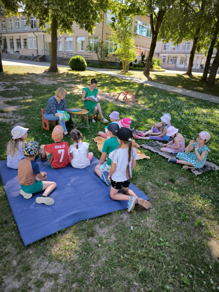 Popietė su Kuršėnų lopšelio-darželio „Eglutė“ „Drugelių“ grupės vaikučiais praėjo puikiai. Skaitėme Brolių Grimų pasaką „Bremeno muzikantai“. Vaikams labai patiko šaunusis pasakos ketvertas. Taip pat skaitėme ir klausėmės Brolių Grimų pasakos motyvais įgarsintą pasaką „Šiaudas, žarija ir pupa“. Šią pasaką įgarsino Beata Nicholson. Kai iš kitos knygelės pasklido „Du gaideliai“ melodija, „Drugelių“ grupės vaikai šauniai pritarė šiai melodijai. Visus sudomino eiliuota ir įgarsinta R. Skučaitės knygelė „Spalvotos skaičių pasakėlės“. Kai buvo paskaitytos pasakos, peržiūrėtos knygelės, grupės vaikučiai smagiai kartu pažaidė. Šis mūsų susitikimas vyko darželio kieme, tad vieta žaidimams buvo labai tinkama. Žaidėm žinomus žaidimus: „Žiedo dalijimas“ ir „Šilta, šalta“. Grįžę iš kiemo vaikai piešė labiausiai įsimintinas akimirkas. Ačiū „Drugelių“ grupės vaikučiams ir jų auklėtojoms.