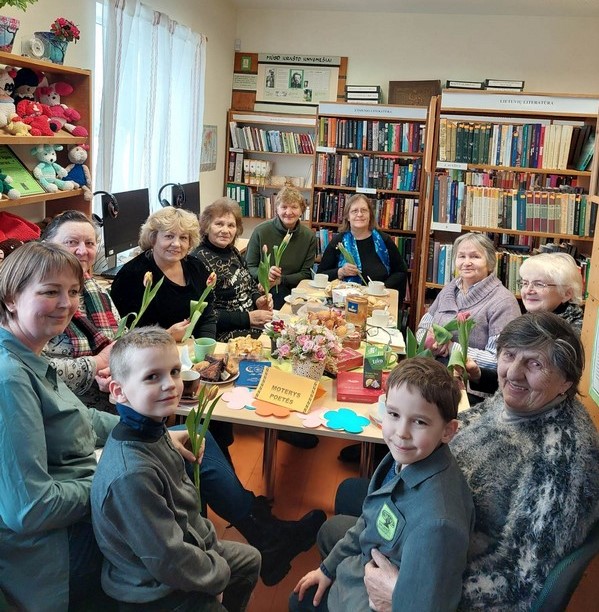 Šventinę popietės dalį pradėjo Šiupylių bibliotekos bibliotekininkė Salvinija Šeškauskienė, kuri į moteris kreipėsi eiliuotojos Ligitos eilėmis apie moterį: „Moterys kaip paukščiai, skris, bet nenukris, jos nebijo aukščio, jei lankys viltis… Moterys įdomios – vieną dieną verks, kitą dieną rodos, kalnus jos nuvers… Jų nereik nuvilti, jas tereik mylėt, žodžiais nuraminti, šypseną uždėt… Trapios ir jausmingos, moterys žydės, jei jų sielos vingy, dėmesys nusės… “. Moteris nuostabiais žodžiais ir pavasarinės gėlytės žiedu pasveikino mažieji skaitytojai.
