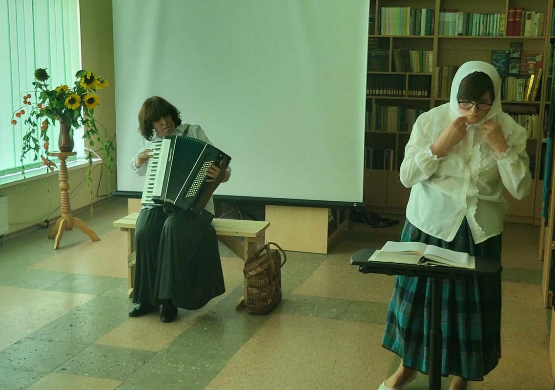 Gruzdžių Augustino Griciaus bibliotekos bibliotekininkių Lionginos Šufinskienės ir Jurgitos Jasiškytės suvaidintame spektaklyje „Gruzdžių dvaro prajovai“ vaizdingai persipynė faktinė medžiaga iš knygos „Monografija. Gruzdžiai“ ir pasakos, sakmės, atsitikimai iš Mato Slančiausko rinkinių „Šiaurės Lietuvos sakmės ir anekdotai“, „Šiaurės Lietuvos pasakos“, „Šiaurės Lietuvos sakmės ir pasakos“.