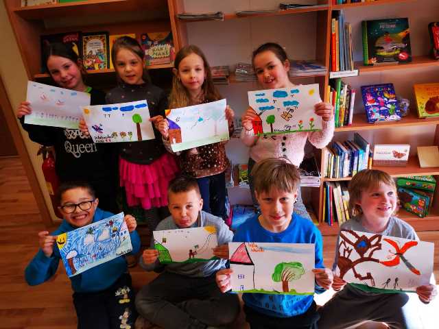 Aukštelkės bibliotekoje Tarptautinę vaikų knygos dieną vykusios popietės rezultatas – spalvingi, nuotaikingi, įdomūs vaikų piešiniai ir vaizduotės ir kūrybiškumo, klausymo įgūdžių lavinimas, kurį suteikė pasakos skaitymas.