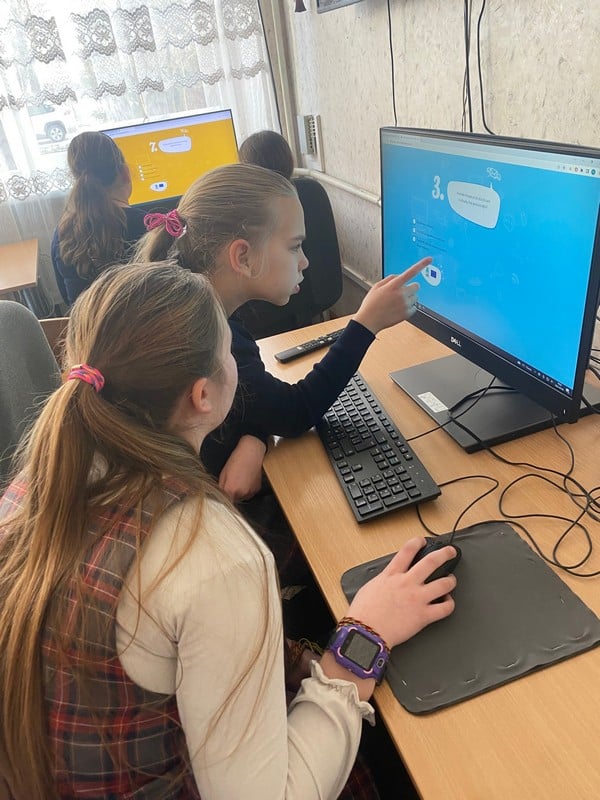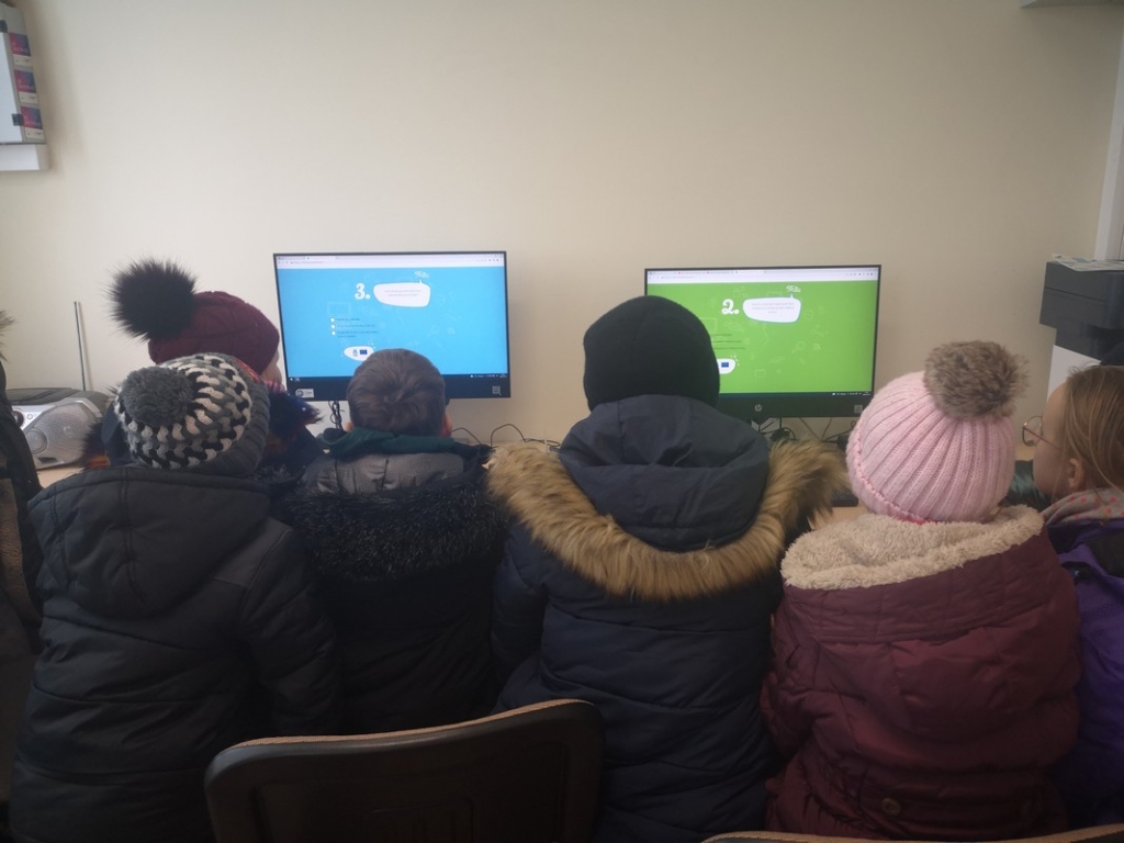 Drąsučių bibliotekoje susirinkę Drąsučių mokyklos ketvirtokai su mokytoja Sondra Sinkevičiene žiūrėjo filmukus apie saugų internetą, aiškinosi, kaip reikia susikurti stiprius slaptažodžius ir pasidaliję į dvi komandas sprendė testus, kuriais pasitikrino įgytas žinias apie saugų internetą.