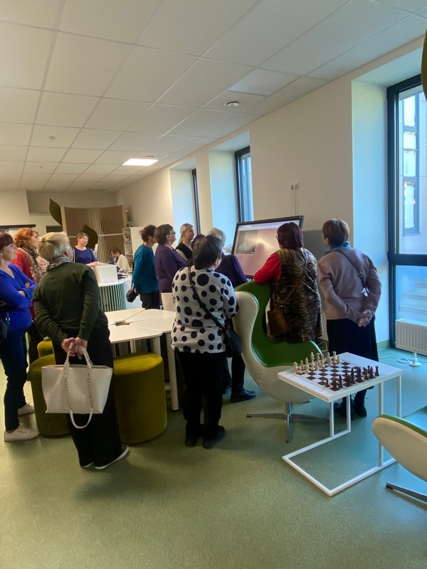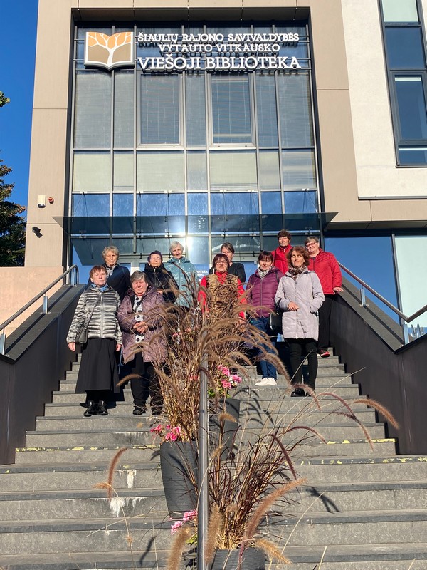 Nuostabiai saulėtą ir gražų spalio 8 dienos rytą Raudėnų moterų klubas „Sidabrinė gija“ išsiruošė į ekskursiją po Kuršėnus. Pirmiausia apsilankėme Šiaulių rajono savivaldybės Vytauto Vitkausko bibliotekoje. Ekskursiją vedė aptarnavimo skyriaus vedėja Karolina Kulevičienė. Ji išsamiai supažindino su bibliotekoje teikiamomis paslaugomis, veiklomis vaikams, aprodė nuostabaus grožio erdves, veikiančias parodas, lauko terasą.