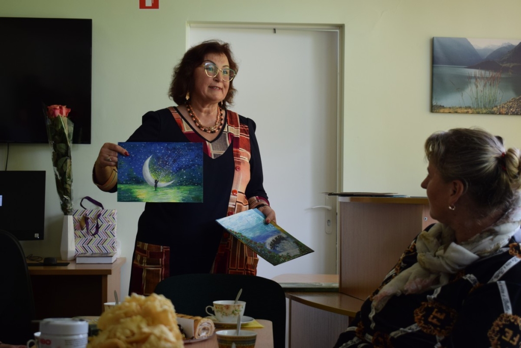 Atidarius parodą bei pasidžiaugus autorės darbais, dalyviai buvo pakviesti šiltam pokalbiui prie arbatos puodelio.