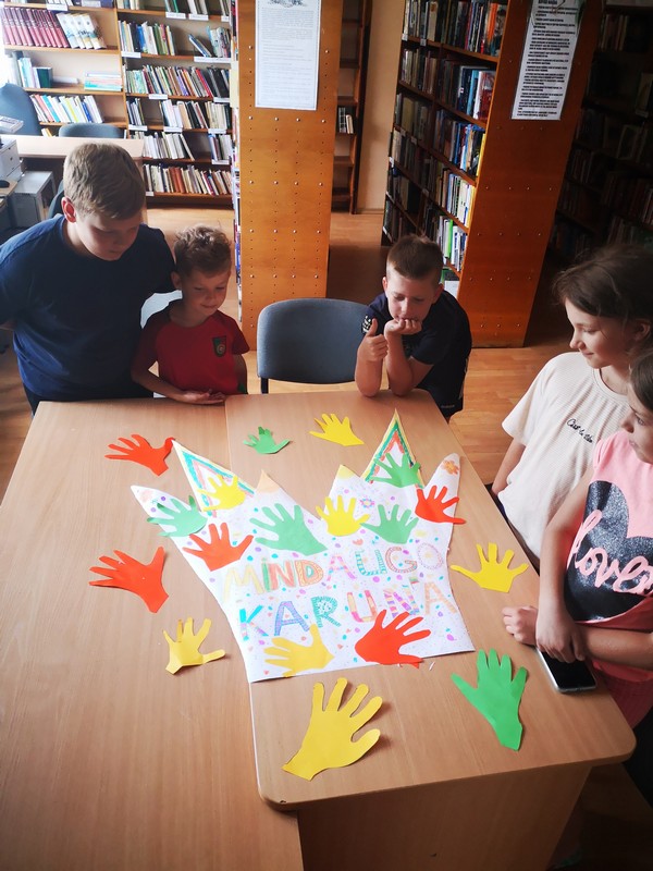 Liepos 5 d. Romučių bibliotekoje įvyko edukacinis užsiėmimas, skirtas Lietuvos karaliaus Mindaugo karūnavimo dienai – liepos 6-ajai – paminėti. Bibliotekininkė Janina Butnorienė vaikams trumpai papasakojo apie karalių Mindaugą, jo laikų Lietuvą, žmonių gyvenimą, karžygius, pilis. Vėliau vaikai iš spalvoto popieriaus karpė savo rankeles, jas klijavo ant didelės karūnos, kurią papuošė ir savo piešinukais. Pasidžiaugę bendru darbeliu, juo papuošė bibliotekos langą.