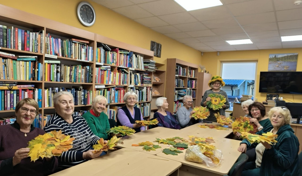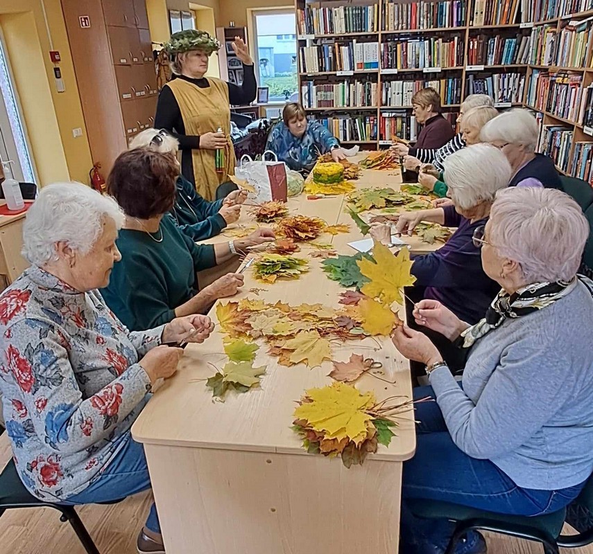 Spalio 15 dienos popietę Ginkūnų bibliotekos senjorų klubo „Gabija“ narės rinkosi į edukacinę-kūrybinę popietę „Rudens formos“. Renginį organizavo Ginkūnų bibliotekos vyresn. bibliotekininkė R. Linauskienė, o užsiėmimus vedė edukatorė Elena Liutkienė. Praktinio užsiėmimo metu moterys buvo kviečiamos kurti natūralias dekoracijas iš rudens gėrybių – servetėles, dėliojant įvairiaspalvius lapus, nenaudojant jokių kitų priemonių.