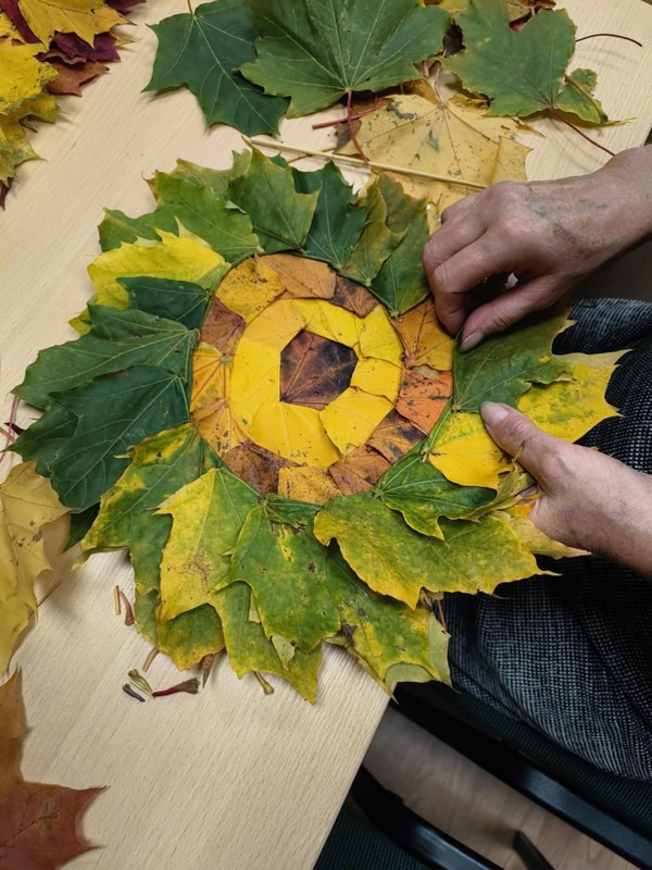 Edukatorė dalinosi idėjomis, kaip iš klevo lapų galima sukurti nuostabius rankų darbo papuošimus. Kiekviena dalyvė atsinešė įvairiaspalvių klevo lapų, o kūrybingumo netrūko: vieni darbai buvo subtilūs, kiti – drąsūs ir spalvingi, atspindintys gamtos įvairovę.