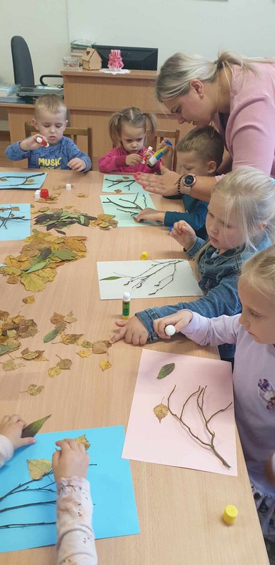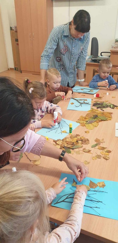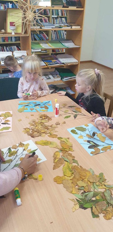 Spalio 6 d. Bazilionų bibliotekoje vyko edukacija „Krentant rudens lapams“, kurioje dalyvavo Dubysos aukštupio Bazilionų skyriaus ikimokyklinio ugdymo ,,Bitučių“ ir ,,Pelėdžiukų“ grupės vaikučiai kartu su auklėtojomis. Jos metu vaikai ant popieriaus lapų klijavo medžių šakeles, o prie šakelių – įvairių medžių spalvotus lapelius. Iš lapelių darė paukštelius, kuriuos nutupdė ant šakelių. Edukacijos metu diskutavome apie rudenį, koks tai gražus metų laikas, kuomet gamta nusispalvina įvairiomis spalvomis.