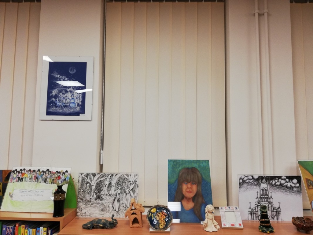 Visą rugsėjo mėnesį Kužių bibliotekos erdvėje puikavosi talentingosios dvylikametės Kotrynos Linkutės tapybos ir keramikos darbai. Jaunoji dailininkė, gyvenanti Beržynės kaime (Kužių seniūnija), lanko Kuršėnų meno mokyklos dailės skyrių. Įvairia technika atlikti piešiniai bei lipdiniai iš molio džiugino tiek suaugusiuosius, tiek vaikus. Į parodos „…Ir truputis fantazijos“ uždarymą atvyko visa Kotrynos Linkutės šeima: mama, tėtis ir dvi sesės. Pati Kotryna mielai atsakinėjo į bibliotekininkių Nijolės ir Ritos pateiktus klausimus, dalinosi ateities planais ir svajonėmis.