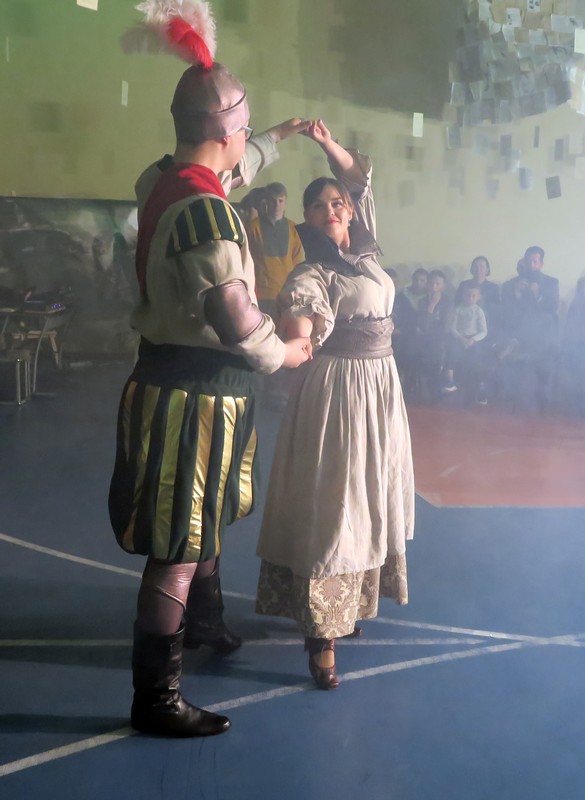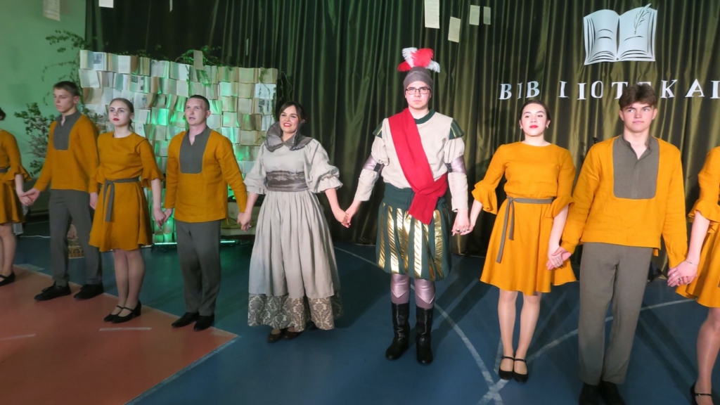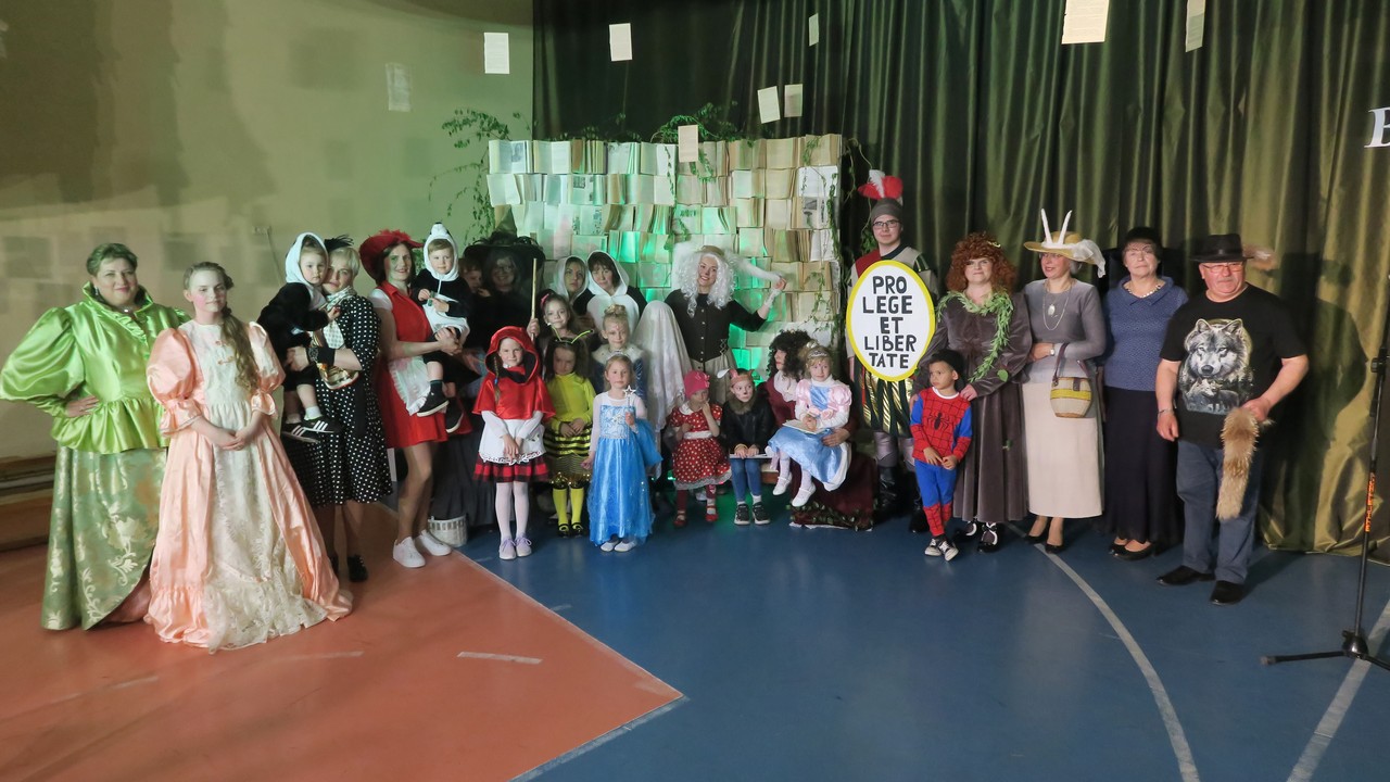 Nuskambėjus šventiniams sveikinimams ir palinkėjimams, prasidėjo knygų personažų susibūrimas, kuriam pradžią davė bibliotekos pasveikinti atvykusios dvi tetulės: – Ten ir Čia (Gruzdžių Augustino Griciaus bibliotekos vyresn. bibliotekininkės Jurgita Jasiškytė ir Liongina Šufinskienė). Svečių būrys iš knygų pasaulio buvo išties gausus – net trisdešimt. Žiūrovams teko atspėti, iš kokios knygos ar kūrinio jie yra.