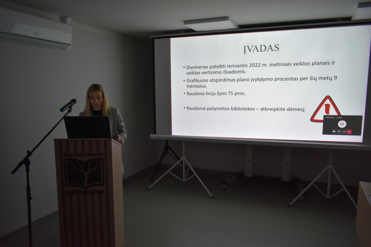 Informacijos ir vadybos skyriaus laikinai einanti vedėjos pareigas Loreta Motuzienė apžvelgė bibliotekos veiklos rodiklius ir darbo pokyčius ateinančiais metais.