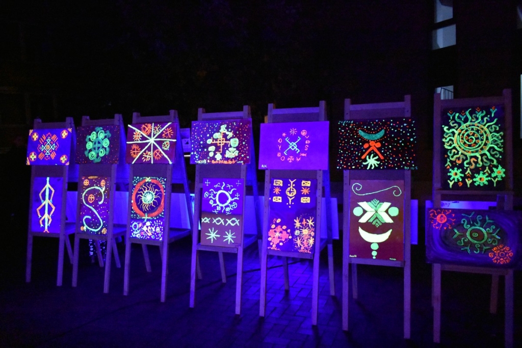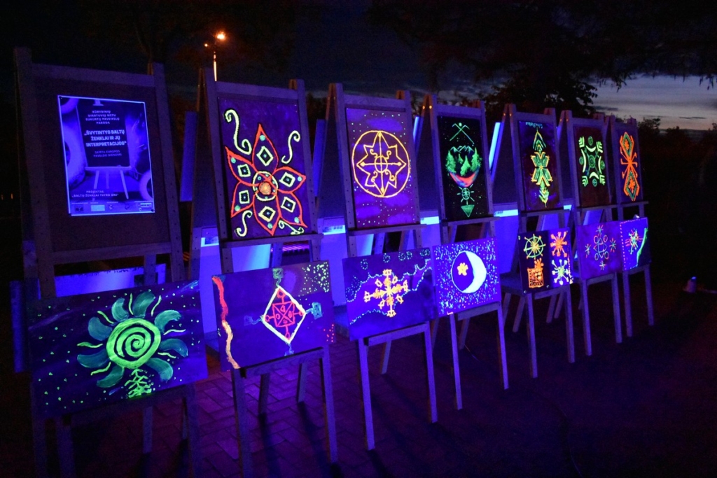 Paroda „Švytintys baltų ženklai ir jų interpretacijos“ parengta rugpjūčio–rugsėjo mėnesiais, organizuojant kūrybines dirbtuves jaunimui įvairiose Šiaulių rajono vietovėse. Tapant paveikslus buvo naudojami fluorescenciniai akriliniai dažai, tad tamsoje juos apšvietus UV lempomis atsiskleidė darbų grožis. Paroda jau buvo eksponuota Paežerių dvare, Gruzdžių Augustino Griciaus bibliotekoje, planuojama eksponuoti Raudėnuose, Meškuičiuose, Naisiuose.