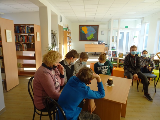 Kol darželio auklėtiniai žadėjo, moksleiviai į Naisių biblioteką atėjo. Čia 13 val. vyko edukacinis renginys Raudėnų mokyklos-daugiafunkcinio centro 5-8 klasių mokiniams. Jo metu bibliotekininkė Daiva Remeikienė supažindino su Šiaurės šalių asociacijos ,,Norden“ sąjungos vykdomu projektu bei spaudinių parodos ,,Knygos šviesa lapkričio sutemose“ autoriais bei knygomis. Mokiniai kartu su bibliotekininke žvakių šviesoje perskaitė siūlomą šių metų Alandų salų autorės Karin Erlandsson knygos ,,Perlų gaudytoja“ ištrauką, kurią buvo galima persisiųsti iš šiaurės šalių literatūros savaitės svetainės.