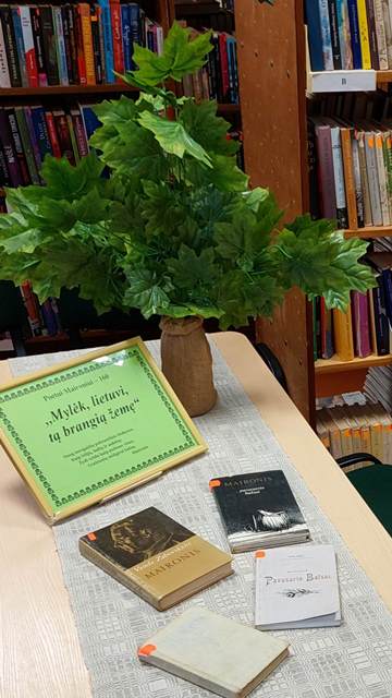 Bibliotekininkė Salvinija Šeškauskienė pasveikino svečius ir pristatė trumpą istoriją apie Joną Mačiulį-Maironį (1862–1932). Maironio tėviškė ir gimtinė – Pasandravio istorinis draustinis Pagojukų seniūnijoje, Pasandravio ir Bernotų kaimai, Raseinių kraštas. Draustinis yra sudėtinė Dubysos regioninio parko dalis. Čia prabėgo keleri poeto vaikystės metai, čia formavosi pirmieji gamtos ir pasaulio pažinimo įspūdžiai. Puikūs Sandravos ir Luknės upelių vingiai, Dubysos slėniai neabejotinai įkvėpė poetą Maironį apdainuoti Gimtinę, jos išskirtinį grožį. Senas sodas, Maironio sodinta pušis, originali ledainė mena poeto jaunystę. Maironio sesers name dabar įkurtas muziejus.
