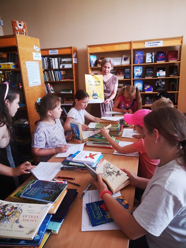 Drąsučių bibliotekoje birželio 13-sios popietę apsilankė vaikai iš dienos centro „Apkabink svajonę“, lydimi mokytojos A. Bugienės. Valandėlėje „Kai man liūdna – aš su knyga gyvenu“ svečiai pasidalijo prisiminimais iš dalyvavimo vasaros skaitymo iššūkyje praėjusiais metais. Jiems buvo įdomu skaityti knygas pagal duotas temas, todėl ir šiemet rinkosi dalyvavimą iššūkyje „Skaitymas tau tinka“. Bibliotekininkė iš anksto atrinko knygas pagal skelbtas temas, o skaitytojai pasirinko tas, kurias nori perskaityti. Užpildė pateiktas anketas su užduotimis, kokias knygas išsirinko. Taip pat buvo skaitomos ištraukos iš pasirinktų knygų bei prisiminta, kokios įdomios knygos jau perskaitytos ir kurias iš jų galėtų rekomenduoti draugams.