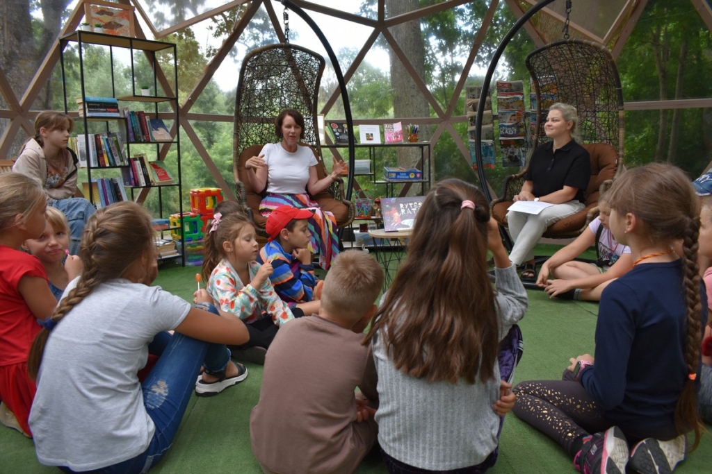 Liepos 27 d. Vasaros skaitykloje Kuršėnų miesto parke viešėjo vertėja, debiutuojanti rašytoja Audronė Kvietkutė. Susitikimą su vaikais rašytoja pradėjo susipažinimu ir prisistatymu – dalyviai rašytojai pasakojo apie savo pomėgius, mėgstamiausias veiklas. Po susipažinimo, A. Kvietkutė susirinkusiems vaikams pristatė savo knygą „Rytės ratai“. Knyga „Rytės ratai“ – trumpos vaikiškos istorijos konkurso nugalėtoja. Vaikams buvo įdomu išgirsti istoriją, kaip gimė idėja parašyti knygą apie Rytę ir jos ratus, autorė mielai perskaitė savo išleistą knygą bei parodė iliustracijas. Kokie nepakartojamai įdomūs būna ratai. Vieni rieda žeme, kiti sukasi danguje, o treti apsigyvena skubančių močiučių virtuvėse ar priverčia tėvelius imtis rimtų matematinių skaičiavimų. Mažoji Rytė trokšta apie juos visus kuo daugiau sužinoti. Rimuota Rytės istorija lengvai įsimenama ir skatina mažųjų smalsumą, kviečia tyrinėti ne tik margus paveikslėlius ir mūsų kalbos vingrybes, bet ir aptarti visiems svarbias, jautrias temas. Susitikimo metu rašytoja bendravo su vaikais, kurie uždavė įvairių klausimų, analizavo Rytės istoriją, bei atkreipė dėmesį, kad net autorė pasipuošusi rato formos papuošalais! Susitikimo pabaigoje Šiaulių rajono savivaldybės viešosios bibliotekos Aptarnavimo skyriaus vedėjo pavaduotoja Karolina Kulevičienė pasiūlė vaikams sudalyvauti edukaciniame užsiėmime „Mano ratai“ ir iš antrinių žaliavų pasigaminti mašinėlę. Vaikai su džiaugsmu kibo į darbą ir netrukus iš tualetinio popieriaus rulonėlių bei plastmasinių kamštelių sukonstravo transporto priemones.