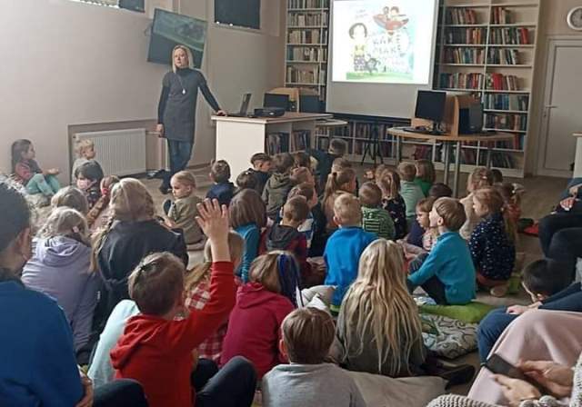 Tą pačią dieną I–III klasių mokiniai vyko į Bubių biblioteką susitikti su knygų vaikams iliustruotoja ir rašytoja Lina Žutaute, kuri labiausiai išgarsėjo paveikslėlių knygelėmis apie neklaužadą mergaitę Kakę Makę.