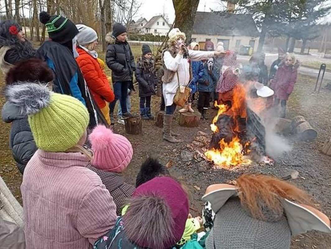 10 val. mokyklos kieme susirinkusių persirengėlių paradas, kuriam vadovavo vyresnioji bibliotekininkė A. Kniurienė ir muzikos mokytoja Indrė Pažereckienė, žiemą iš kiemo varė su trenksmu: netrūko skambių dainų, trankių šokių, linksmų žaidimų, puikių persirengėlių… Laužo liepsnose degė Morė, kartu su vaikų nuspalvintais ožiukais-kapriziukais. Sočiai privalgę blynų, keptų mokyklos valgykloje, ir atsigėrę arbatos, persirengėliai nenoriai skirstėsi į klases.