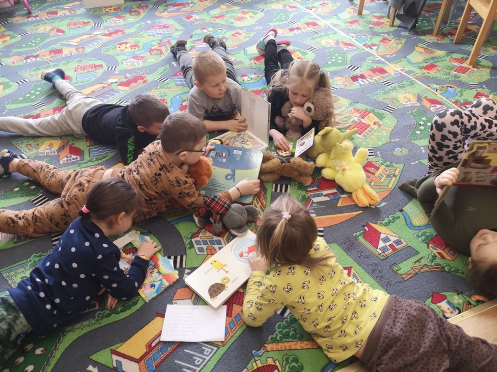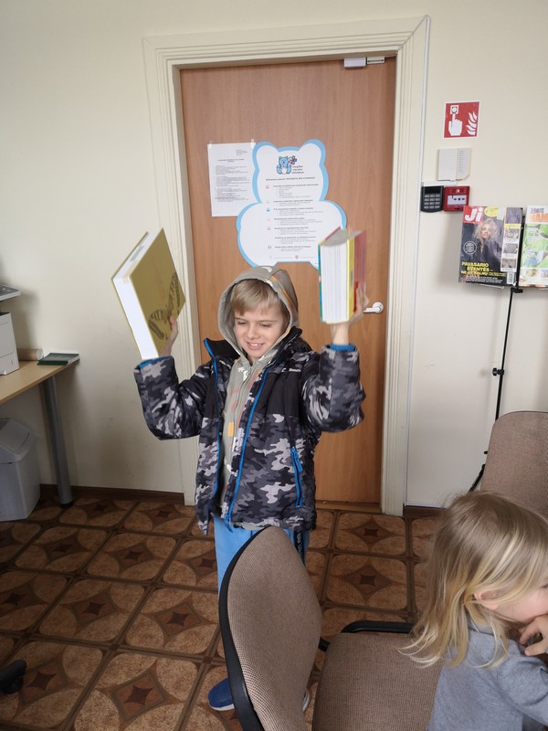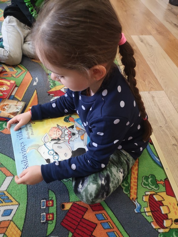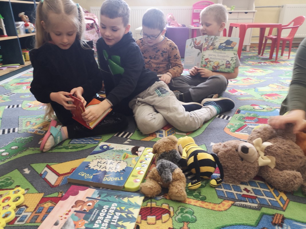 Iš pat ryto, nešina naujų knygų maišeliu, bibliotekininkė Janina Butnorienė atvyko į Drąsučių skyriaus priešmokyklinio ugdymo grupę „Pelėdžiukai“ su mokytoja Virginija Pelukiene. Bibliotekininkė trumpai pasakojo apie vaikų knygos dieną, jos istoriją. Tada su vaikais perskaitė L. Žutautės knygą „Kakė Makė groja dūdele“, kurios pristatymui bibliotekininkė atsinešė ir pliušinių žaisliukų: katiną, pelę, bitę, papūgą, vilką, dramblį, na, ir, žinoma, dūdelę. Skaitant knygelę vaikai imitavo žaisliukų balsus, pasikeisdami grojo dūdele. Paskui vaikai pasinėrė į spalvingų knygelių puslapius: vartė, domėjosi, skaitė. E. Pliatkutė su A. Bogušaite paskaitė B. Bloom knygelę „Išsilavinęs vilkas“.