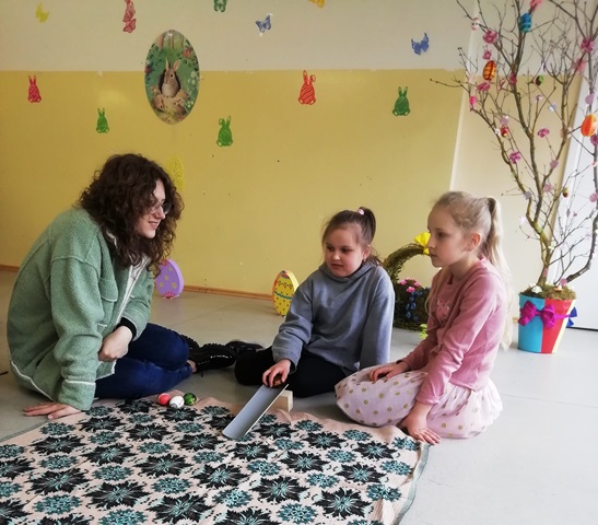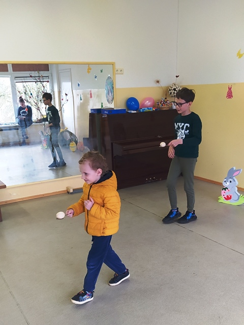 O mes šventės metu žaidėme įvairius judriuosius žaidimus, ratelius: „Jurgeli, meistreli…“, „Barė ponas katinėlį“, šaukėm balandį, šaukštu nešėm kiaušinį, „Šilta – šalta“ ir kitus žaidimus. Kartu su vaikais žaidimuose dalyvavo ir mamytės. Šventės metu veikė margučių parodėlė „Mano margutis“. Parodėlė buvo iš šventės dalyvių atsineštų margučių. Į šventę netikėtai buvo užsukusi Velykų boba, kuri prie kiekvieno vaiko margučių krepšelio padėjo po dovanėlę – saldainių maišelį. Vėliau prasidėjo margučių ridenimas. Ne visiems greitai pasisekė sulaukti rezultatų, bet kantrybė ir sumanumas nugalėjo. Prisiminimui vaikai nusispalvino po iškirptą margutį ir su gera nuotaika iškeliavo namo.