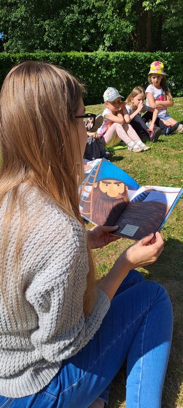 Saulėtą ir šiltą birželio 6 d. rytmetį Šiaulių miesto savivaldybės viešosios bibliotekos Aido filialo vyresn. bibliotekininkė Ieva Kadžiulytė svečiavosi Šiaulių rajono savivaldybės Vytauto Vitkausko viešosios bibliotekos Ginkūnų padalinyje, kur vedė sensorinius skaitymus. Edukacijoje dalyvavo Šiaulių rajono Ginkūnų Sofijos ir Vladimiro Zubovų progimnazijos PUG „Gudručiai“ ugdytiniai ir mokytojos. Vaikai, patogiai įsitaisę Ginkūnų dvaro kiemelio pievelėje, klausėsi Oleg Čaklun knygelės „Berniukas ir jūra“. Ši paveikslėlių knygelė pasakoja apie tai, kaip mažo berniuko sieloje, apimtoje grožio, paslapties ir gamtos didybės, gimsta ir stiprėja labai gilūs ir šviesūs jausmai. Kiekvieną kartą, ateidamas prie jūros, berniukas entuziastingai bendrauja su savo nematomu draugu, kurio balsą girdi kriauklelėje. Edukacijos metu vaikams mintimis nusikelti prie jūros padėjo sensorinės priemonės: vaikai taškėsi vandens purslais, pabuvojo piratais ir jūreiviais, išsiaiškino knygoje minimą paslaptį apie nematomą berniuko draugą, gyvenantį kriauklėje. Išklausę istoriją, vaikai patys piešė savo mylimiausius draugus.