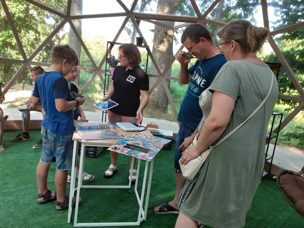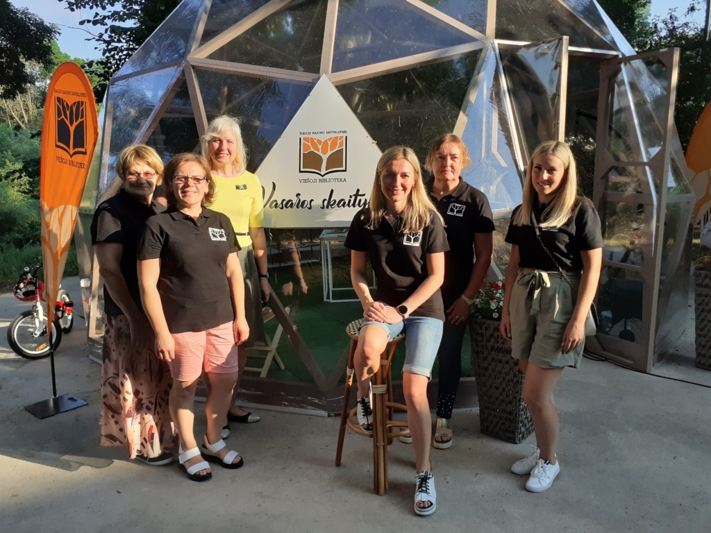 Karščiausia diena neišgąsdino kuršėniškių ir miesto svečių – į Vasaros skaityklos, įrengtos geokupole, atvėrimą sugužėjo jauni, maži, suaugę bibliotekos lankytojai ir smalsūs žiūrovai. Čia juos pasitiko bibliotekos darbuotojos, vedėja Joneta Filinskė atidarė skaityklą, pasveikino gausų būrį būsimų skaitytojų. Vasaros skaitykloje laukė interaktyvūs žaidimai „Atgimstančios žemaičių gėlės“, „Užaugink žemaičių gėlę“ ir lektoriai: grafikos dizainerė Kristina Siebaitė ir dizaineris Jaroslav Daveiko. Šią šventinę dieną mėgstamiausia jaunųjų lankytojų vieta tapo skaitykla ir šalia esanti erdvė, viliojo edukaciniai žaidimai: „Šviečiančių dažų magija“, „Surink taškus“, „Pasigamink knygų skirtuką ir ženkliuką“, „Kendamo“.