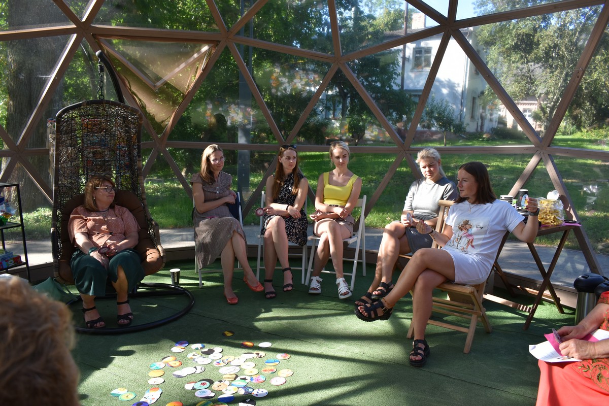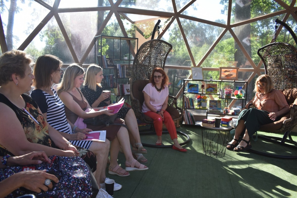 Saulėtą ir šiltą rugpjūčio 12 d. rytą Vasaros skaitykloje Kuršėnų miesto parke vyko teorinė praktinė paskaita „Psichoterapija, biblioterapija“, kurią vedė psichologė-psichoterapeutė Donata Grakauskaitė-Šličienė. Ji teigė, kad gebėjimą pažinti save ir analizuoti savo išgyvenimus reikia nuolat tobulinti. Todėl ji pasiūlė paskaitos dalyviams praktiškai išbandyti inovatyvias priemones – metaforines asociatyvines korteles. Metaforinės asociatyvinės kortelės – tai žaidimų kortų ar atviruko dydžio paveikslėlių rinkiniai, vaizduojantys žmones, jų sąveiką vienas su kitu, gyvenimiškas situacijas, peizažus, gyvūnus. Žodžių ir paveikslėlių derinys sukuria reikšmių žaidimą, aktualia žmogui tema. Šis instrumentas leidžia apeiti racionalų mąstymą, sukuria pasitikėjimo atmosferą, padeda įveikti vidinį pasipriešinimą, pašalina sunkiai įveikiamus apsauginius psichikos barjerus. Paskaitos dalyviai, pasirinkę korteles, išsikėlė problemas bei numatė jų sprendimų būdus. O paskaitos pabaigoje visi kartu sukūrė ir papasakojo pasaką. Dalyviams labai patiko, kad paskaita buvo praktinė – buvo reali galimybė padirbėti su skirtingomis kortelėmis, jas išbandyti ir prisiliesti prie savo vidinio pasaulio.