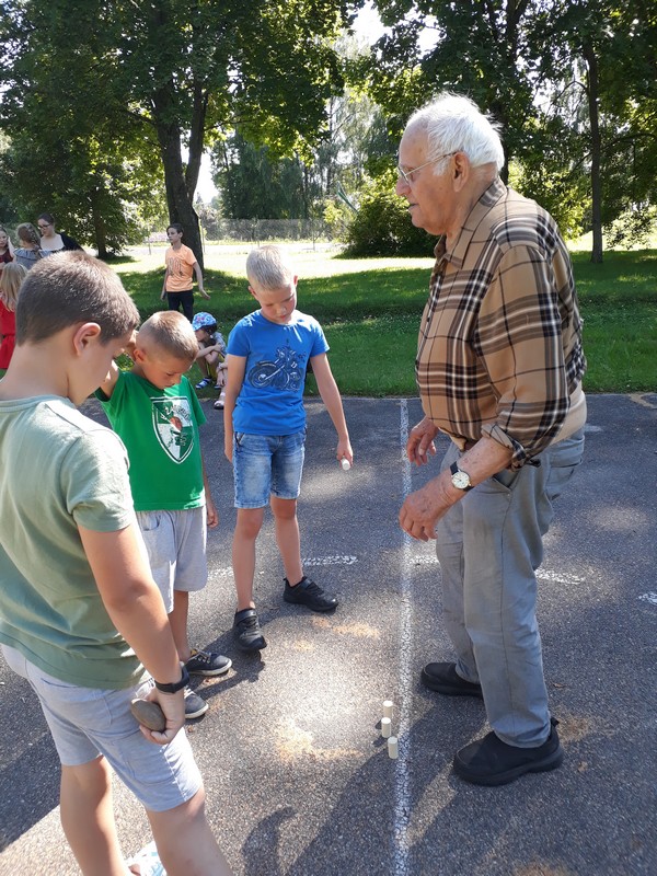Rugpjūčio 3 d. į stovyklą atvyko buvęs kurtuvėniškis, dukart tremtinys, „Sibiro Alma Mater“ sudarytojas, inžinierius Romualdas Baltutis. Svečias pasakojo apie savo vaikystę, apie žaidimus, kuriuos žaidė būdamas ir gyvendamas Sibire. Žaidimai „Mušk ir bėk“ ir „Išmušk kaladėlę“ sudomino stovyklautojus. Pirmoji stovyklos diena baigėsi vaišinantis R. Baltučio atvežtu pyragu ir saldainiais.