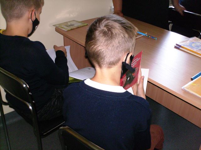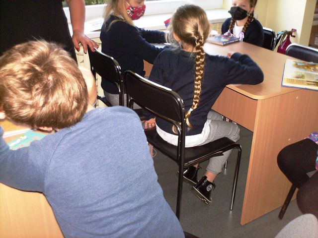Ketvirtos klasės mokiniai bibliotekoje pristatė per vasarą perskaitytas knygas, pasakojo, kodėl pasirinko tas knygas, kas jose patiko, ar rekomenduotų perskaityti draugui.